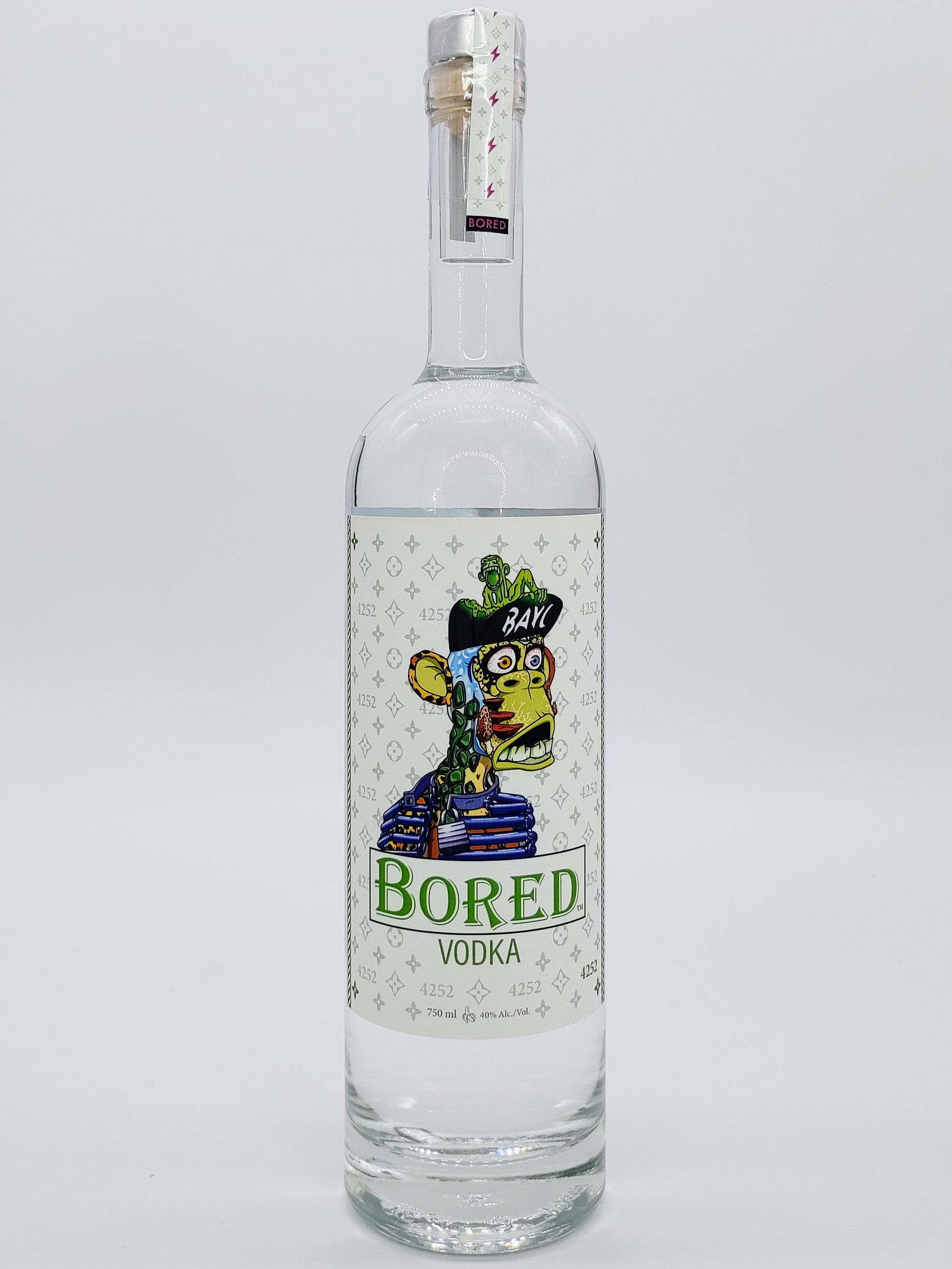 Bored Vodka - 6x distilled from GMO-Free American Corn and Sierra Nevada Mountain Spring water - Produced by USA Today's #1 "Best Craft Vodka Distillery - 2022, in partnership with licensed art from individual holders the Bored Ape Yacht Club and associated Yuga Labs NFT collections (MAYC, BAKC, and Koda's).